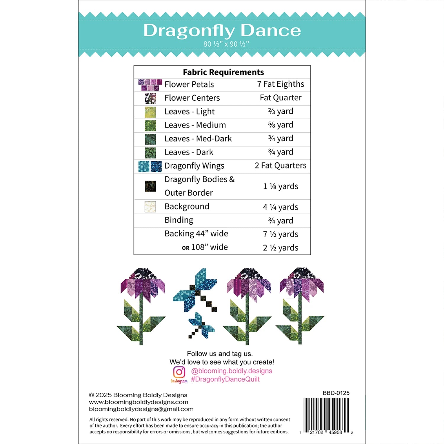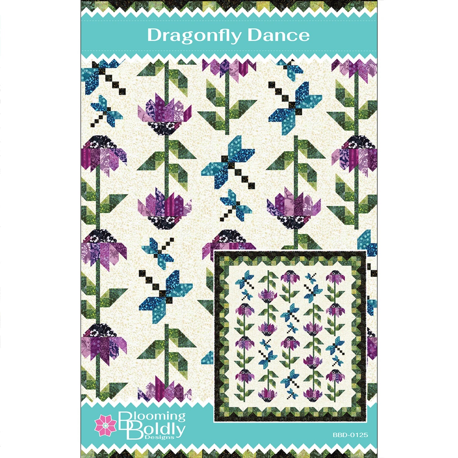 Dragonfly Dance by Leslie Ryan of Blooming Boldly Designs features dragonflies dancing in a field of coneflowers. Traditional piecing methods.