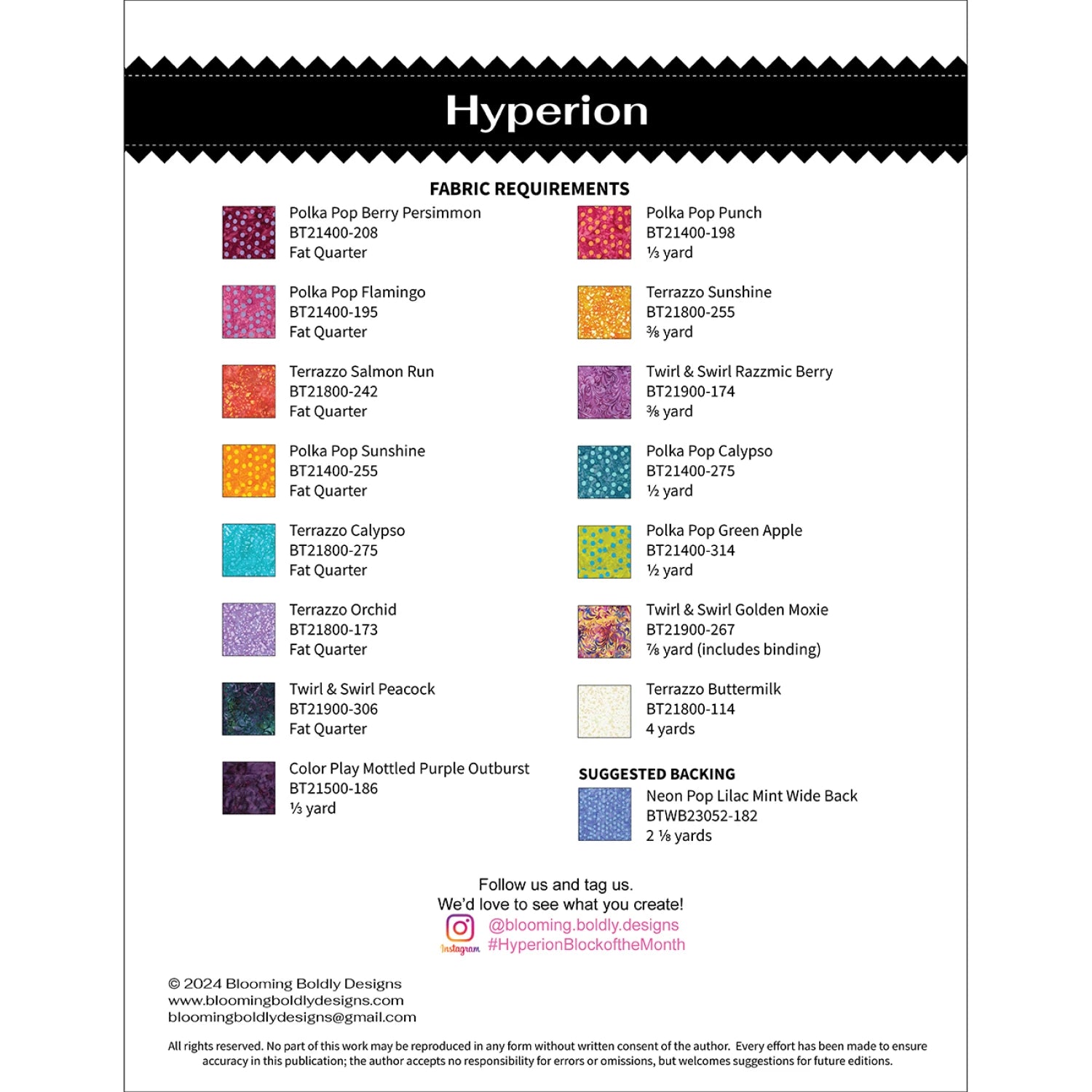 The Hyperion Quilt by Leslie Ryan of Blooming Boldly Designs is a modern twist on tradition. Hyperion combines the classic charm of star, geese, and log cabin blocks with a modern flair. The pattern is written in a block of the month format in a single pattern.