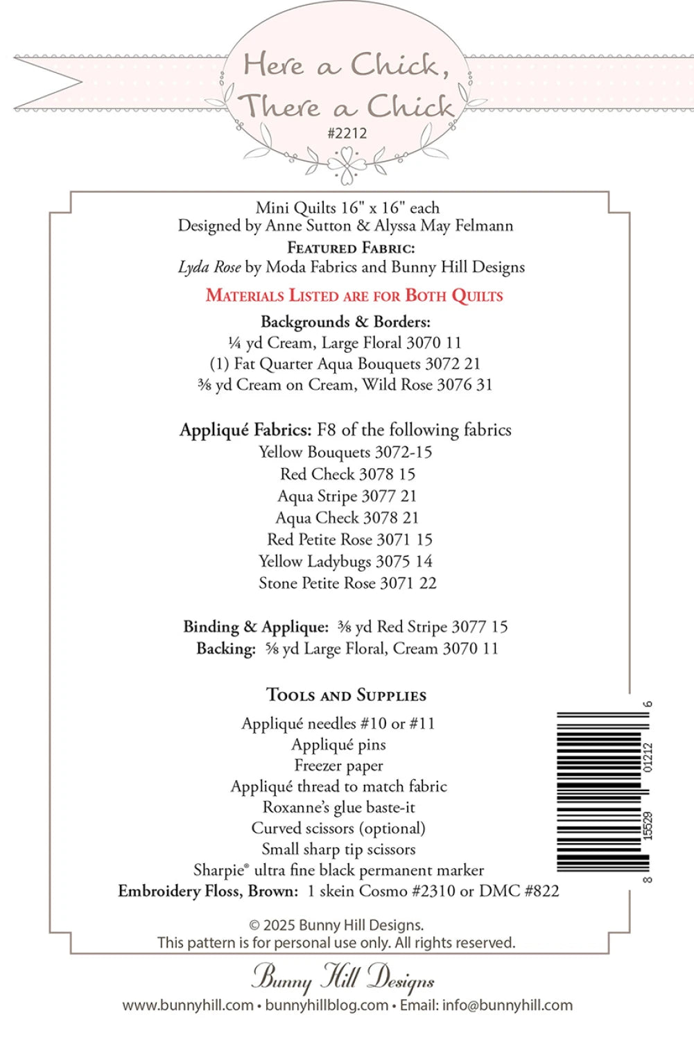 2 Mini Quilts in one pattern, each one finishing at 16 1/2” x 16 1/2”. Perfect to display on a table or a wall. The appliqué works for any method.