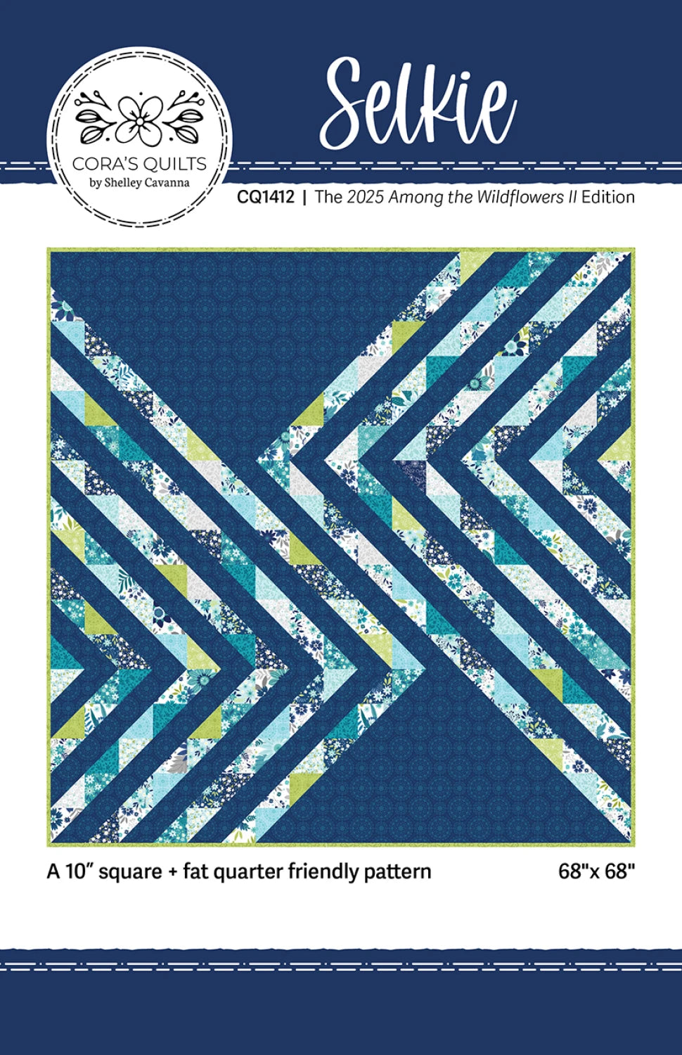 Selkie, with its beautiful sea-glass shades of blue and green, was inspired by rolling ocean. It’s the perfect size to bring along to your favorite beach or to snuggle up with and get lost in your favorite novel. Ideal for confident beginner quilters, this project highlights prints from Shelley Cavanna’s wintery Blossom Hollow fabric collection with Benartex Fabrics. This pattern is designed for 10” squares or fat quarters. Finished Size: 68” x 68” Pattern Format: 5.5” x 8.5” pattern booklet Techniques Used: traditional piecing, 8-at-a-time half-square triangles Difficulty Level: confident beginners