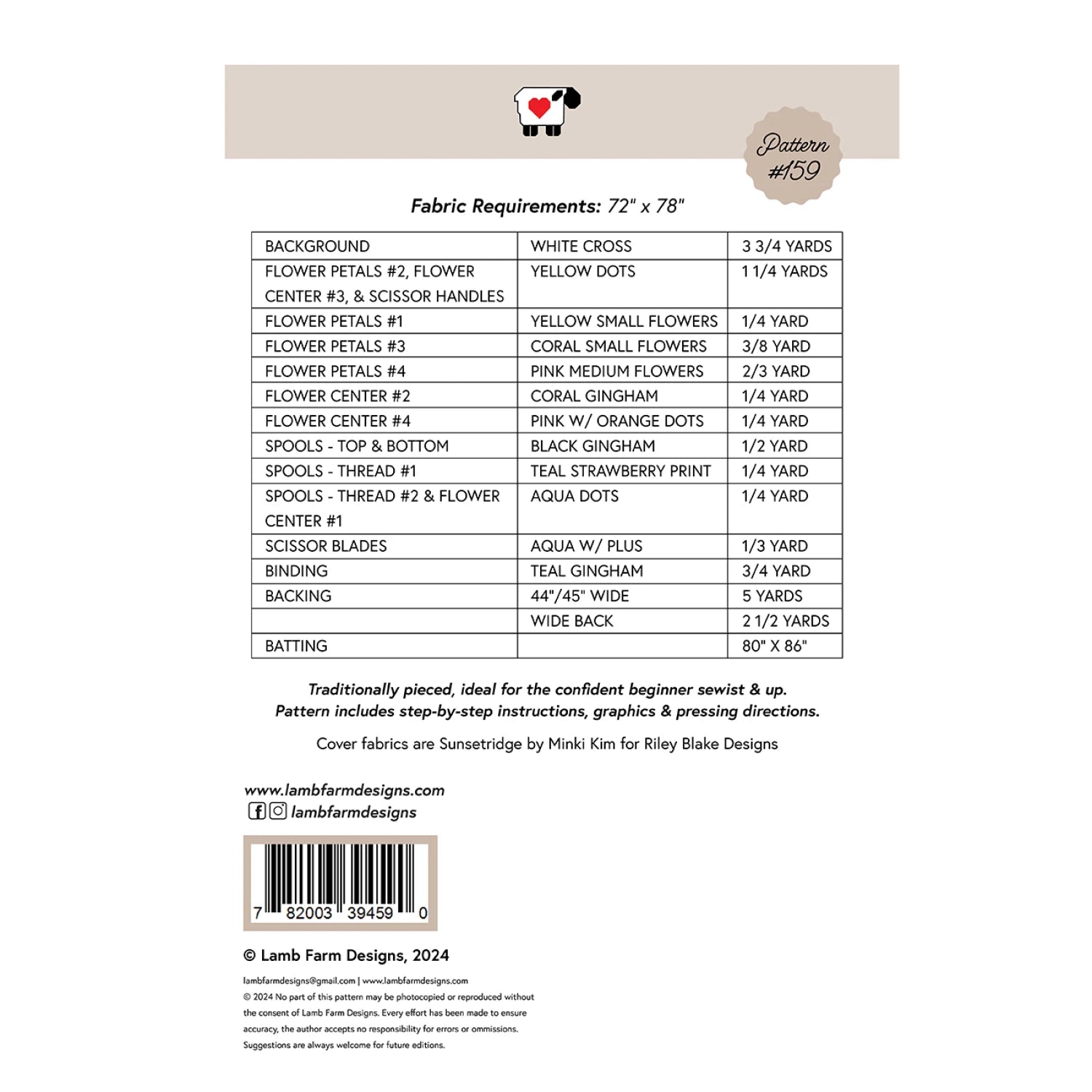 ntroducing the Snips & Blossoms quilt pattern, a delightful design that brings together spools of thread, spring blossoms, and scissor blocks, making it a perfect quilt for sewers and crafters alike. Great in any bright and playful fabric or muted soft tones, with the cover showcasing Sunset Ridge by Minki Kim for Riley Blake Designs. Traditionally pieced and ideal for confident beginners, this pattern includes step-by-step instructions, detailed graphics, and pressing directions to guide you through the creative process.