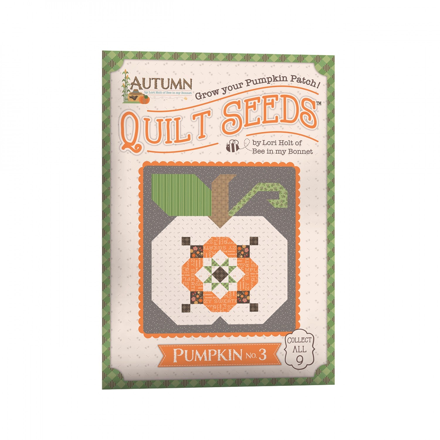 The Autumn Quilt Seeds Patterns by Lori Holt of Bee in my Bonnet is a pattern series for 9 different pumpkin quilt blocks. Each seed packet has instructions to make 1 block – all you have to do is add fabric. A paper pattern is included in each packet. No templates are required. Each block finishes at 18" x 20" and uses traditional piecing techniques. Collect all 9 of these beautiful seed packets in their keepsake packaging. This would make a great kit or block of the month. Optional quilt finishing instructions will be included in each packet.