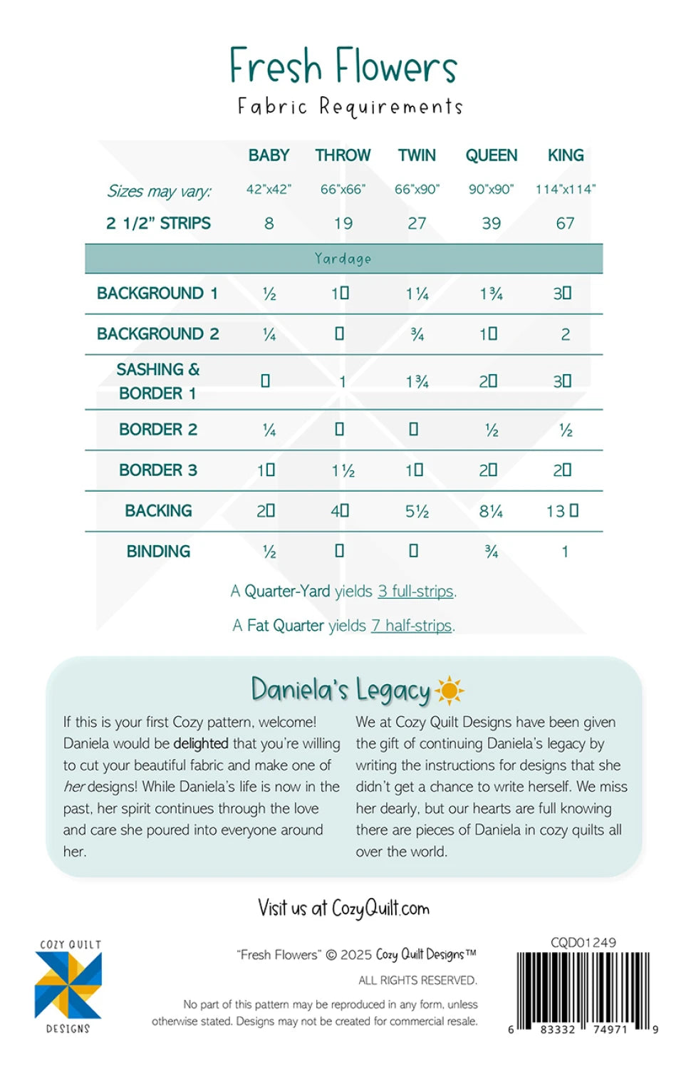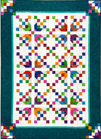 Fresh Flowers gives the perfect canvas for a delightful array of colors—go wild! The use of two subtle backgrounds creates a dynamic secondary design that grounds the Flowers and allows them to pop. It’s such a joyful pattern that looks amazing in any size, and any color-style; soft and muted looks as stunning as bright and vibrant! The Corner Blocks and extra-wide border makes the design perfect for overhang on beds.