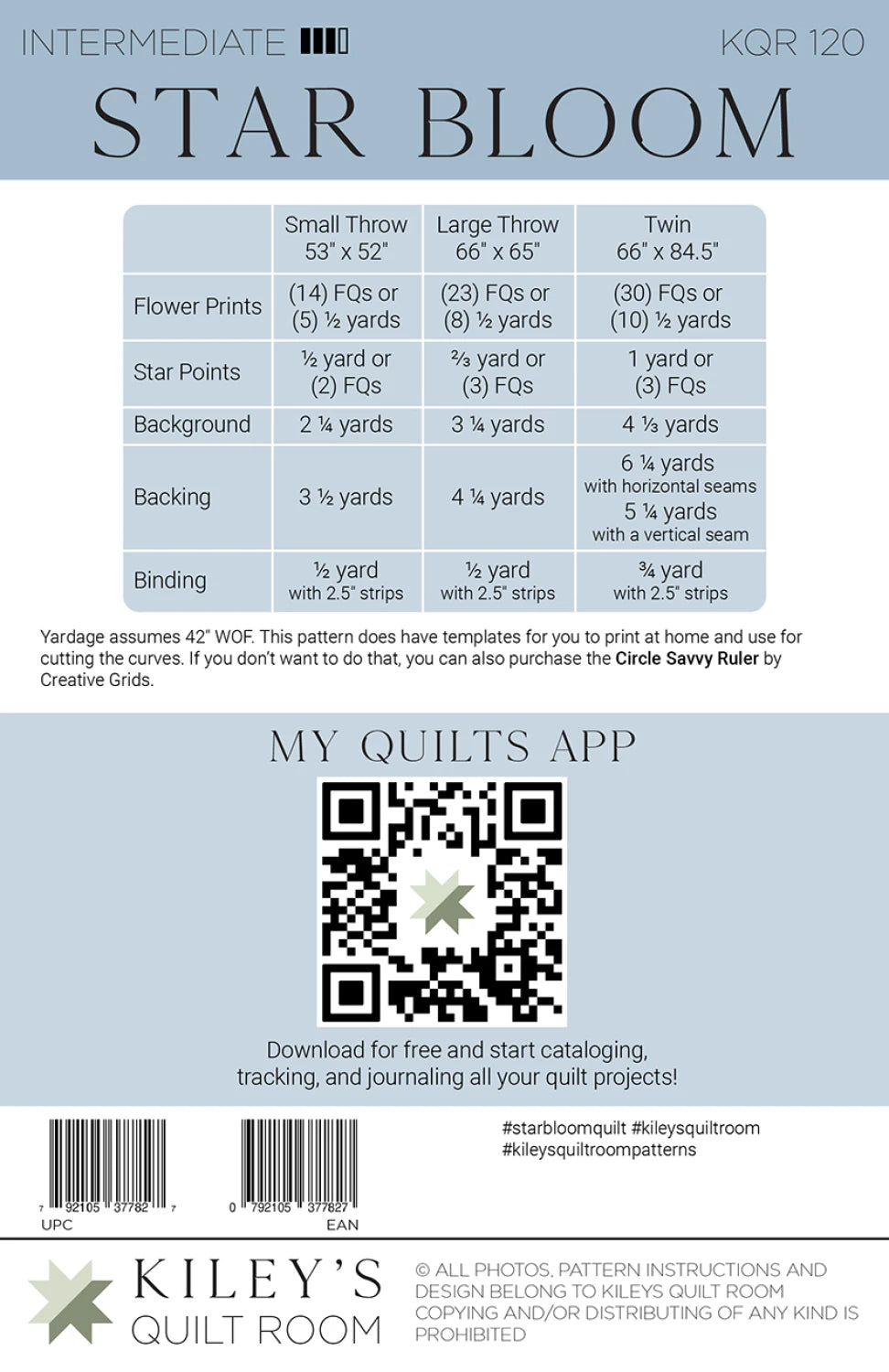 designed the Star Bloom pattern to go along with my debut fabric collection with Moda called, Potted! I love the simple florals with a fun star in the center. This pattern is great for showing off fabric collections! This pattern is rated Advanced Beginner and contains curved piecing with templates or the optional Circle Savvy ruler from Creative Grids. This patterns comes in Small Throw, Large Throw, and Twin.