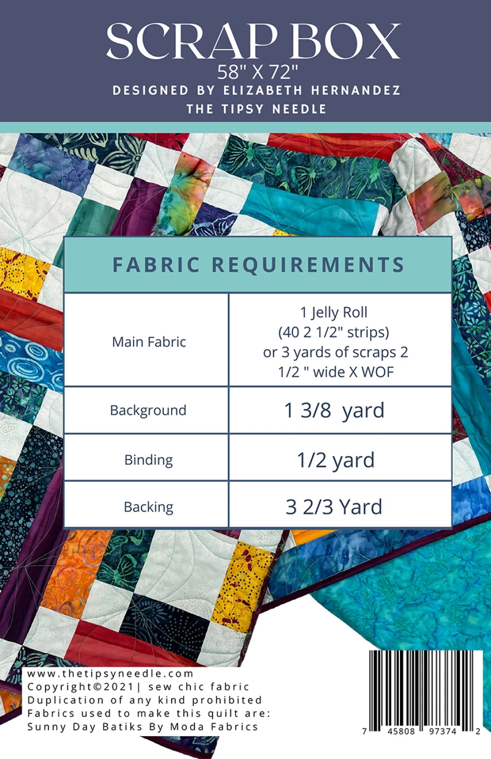 One 2 1/2" strip roll and a little background yardage is all you need to create this easy box pattern
