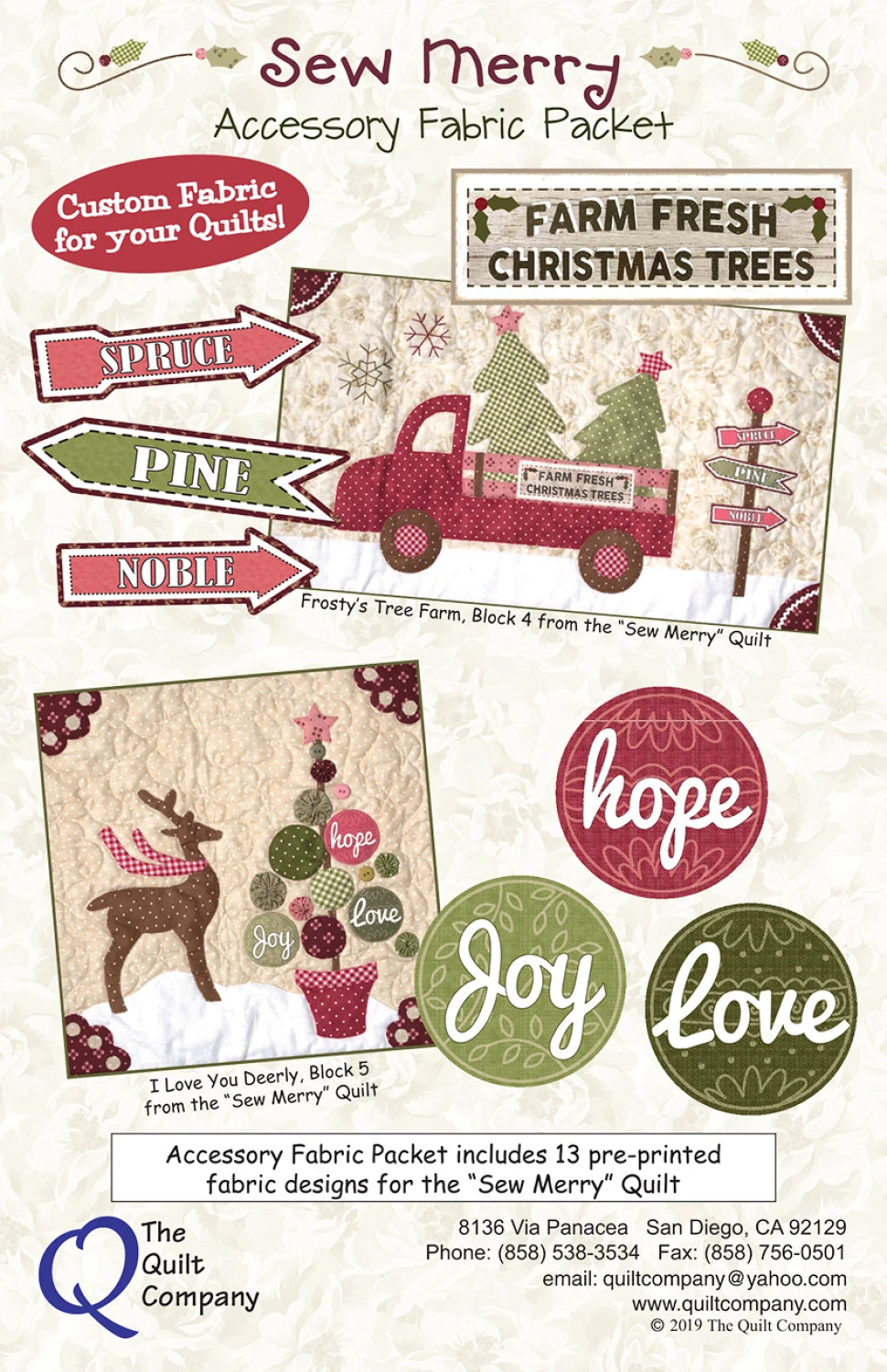 This set includes 6 patterns and 1 accessory fabric packet. The Sew Merry BOM featuring easy applique and piecing. This pattern contains instructions on assembling the border and remaining blocks to finish the quilt.
