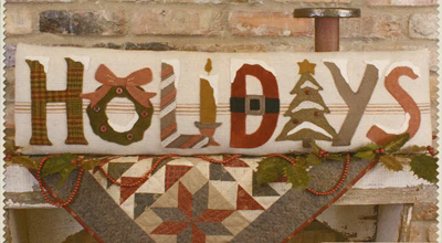 Enjoy this table mat or use as a large holiday pillow. The ticking strips will go along the top and bottom of your piece and uses hand dyed wools for the motifs.