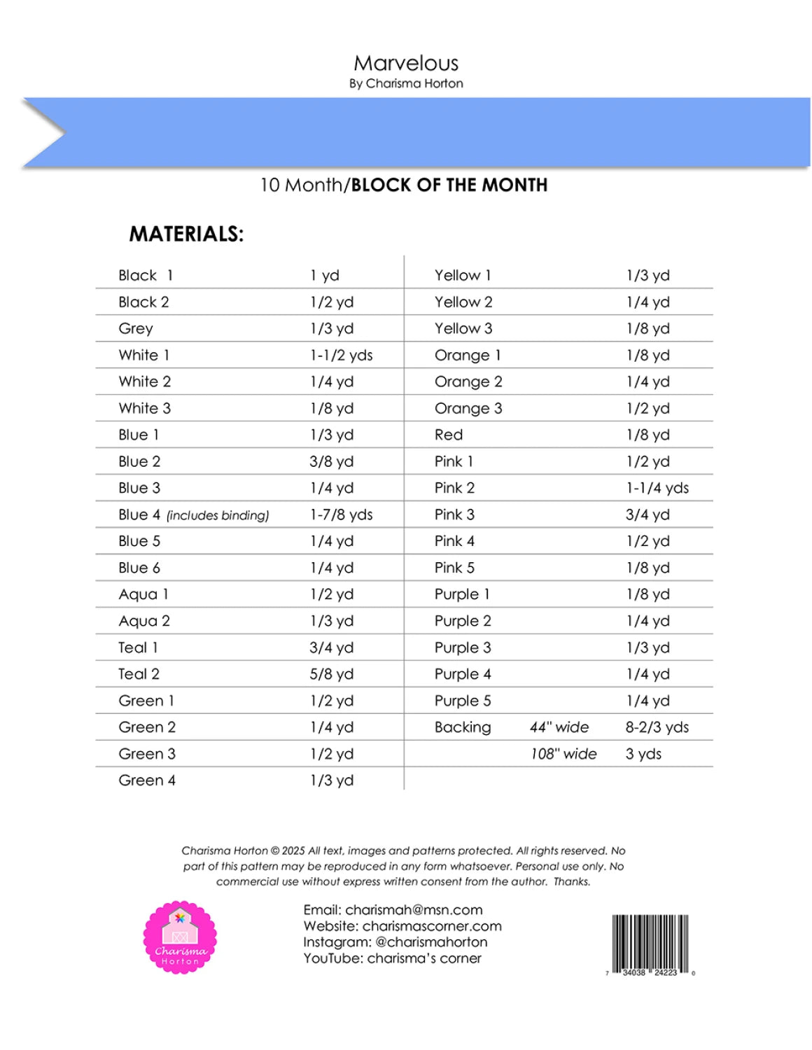 Marvelous is a 10 month BOM in one pattern. This BOM has a few techniques.