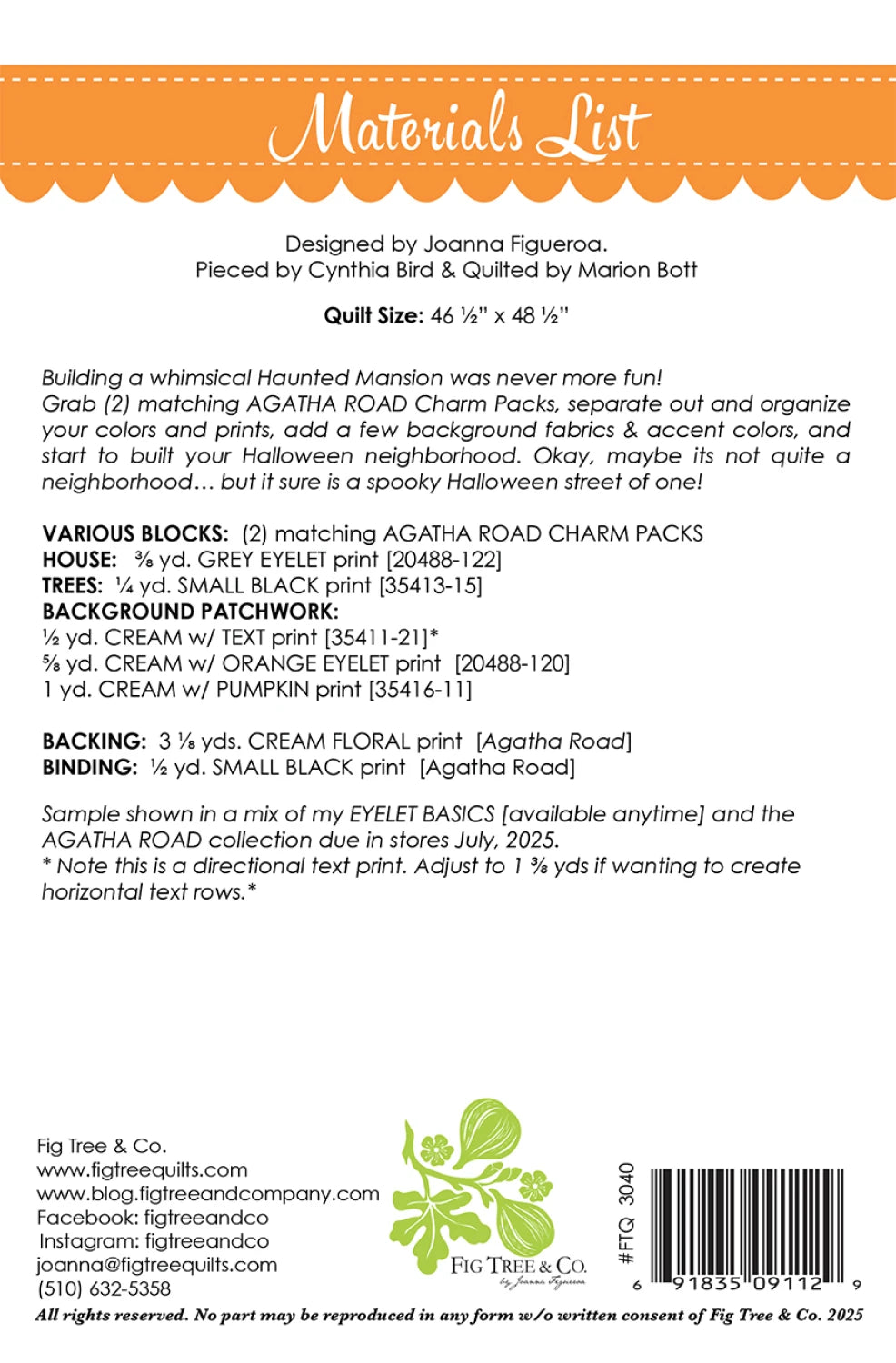 Building a whimsical Haunted Mansion was never more fun! Grab (2) matching AGATHA ROAD Charm Packs, separate out and organize your colors and prints, add a few background fabrics & accent colors, and start to build your Halloween neighborhood. Okay, maybe it's not quite a neighborhood.... but it sure is a spooky Halloween Street of one!