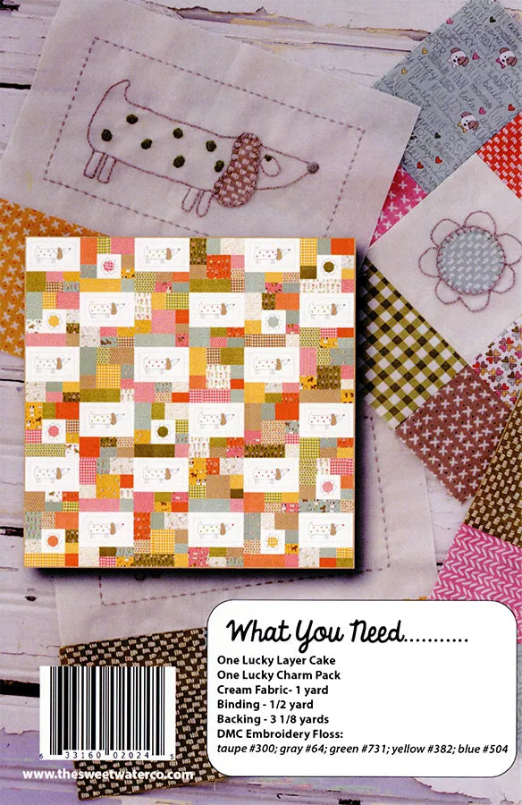 Our Kit features a Lucky Charm Pack and Lucky Layer Cake, the background, floss, binding and pattern. The pattern and fabrics are designed by Sweet Water Quilt Company. Purchase the backing at the same time as the kit and receive 20% off of the backing fabric. Two backing Choices.