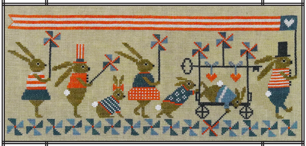 This adorable “Colony” of bunny rabbits has decided to put on the most amazing Patriotic Parade using the paper pinwheels they have crafted! Each bunny is dressed in their finest red, white and blue apparel and ready to go! Mr. Rabbit has been chosen to lead the parade and fly the American flag, while toddler-bunny discovers new and creative ways to use a pinwheel.