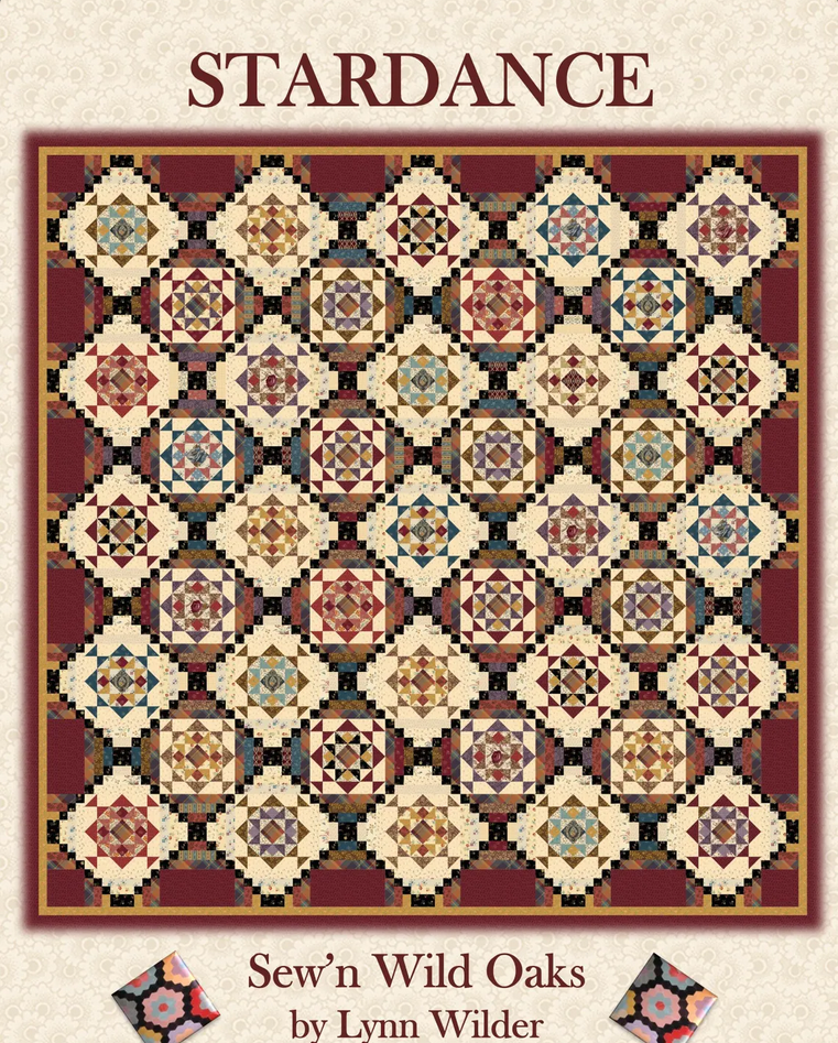 Lynn has outdone herself again.  The Stardance pattern is a very scrappy quilt pattern made from a variety of fabrics, ours is mostly Hearthstone & Gentry Mill, fabrics designed by Lynn for Marcus Brothers, shown below. The pattern is also designed by Lynn Wilder of Sew N' Wild Oaks Pattern Company.