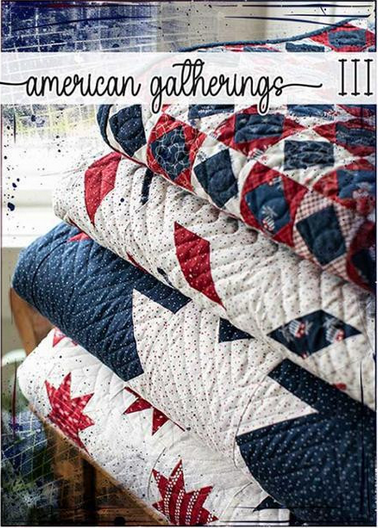 American Gatherings 3 Quilt Book is filled with perfectly patriotic projects pieced together by Primitive Gatherings for Moda Fabrics.  The book includes eight different quilt patterns, and 4 additional projects-such as pillows and candlemats.